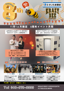 2025.11.07 キャンペーン クレイジービー越谷8周年!!スペシャルキャンペーン開催中!! おかげさまでクレイジービー越谷では11月で8周年を迎えることができました。 感謝の気持ちを込めて11月末までの期間限定で入会金無料のキャンペーンを実施しています! 入会するなら今!! 入会金11,000円+事務手数料3,300円=14,300円 → 0円 入会ご希望の方は2か月分の月会費(11月中であれば残日数を日割り計算) ご持参いただけたらすぐにご利用可能! 入会当日のご利用でも大丈夫です。 ご見学・ご体験・ご入会お待ちしております! « 一覧をみる »